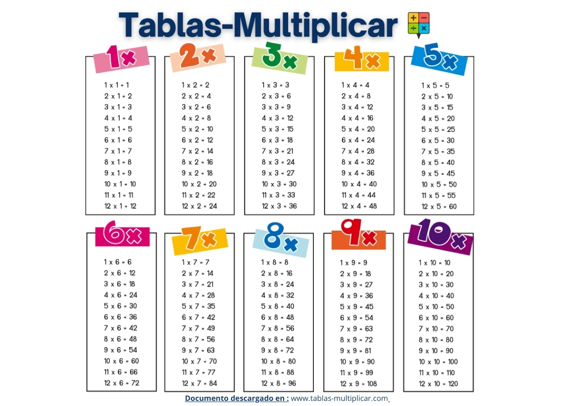 Descargar Tablas de Multiplicar del 1 al 10 para Imprimir con fondo .PDF⟫