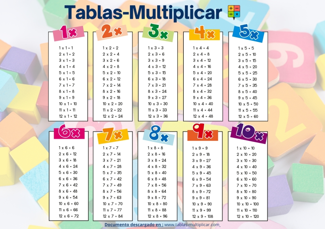 Descargar Tablas de Multiplicar del 1 al 10 para Imprimir con fondo .JPG⟫